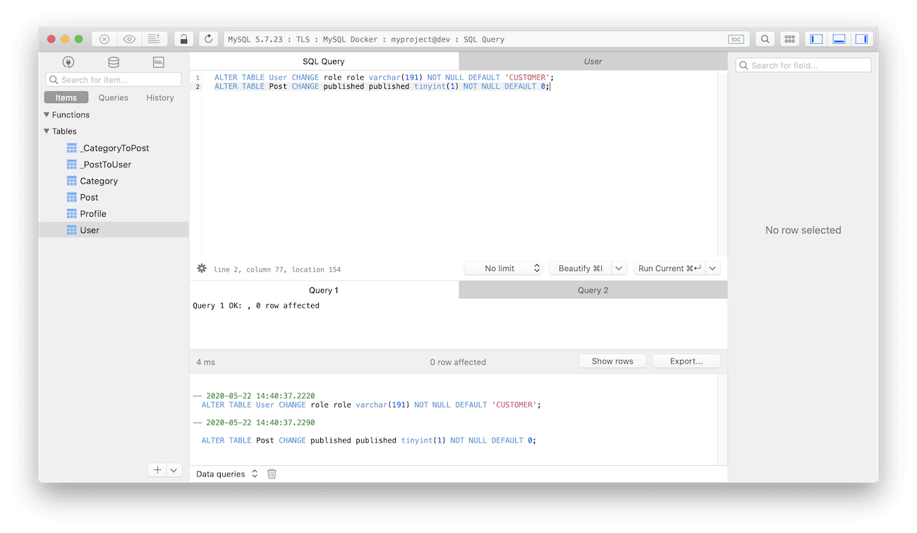 检查你的数据库(到目前为止是使用 Prisma 1 管理的)